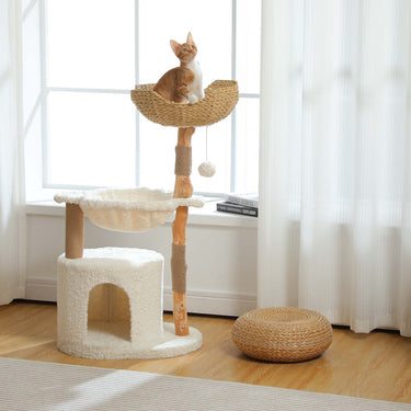 - Kraboppervlak en ligplekken: Kies een houten krabpaal met sisal krabgedeeltes en comfortabele plateaus of hangmatten. Zo kan je kat zijn nagels onderhouden en tegelijkertijd heerlijk ontspannen.