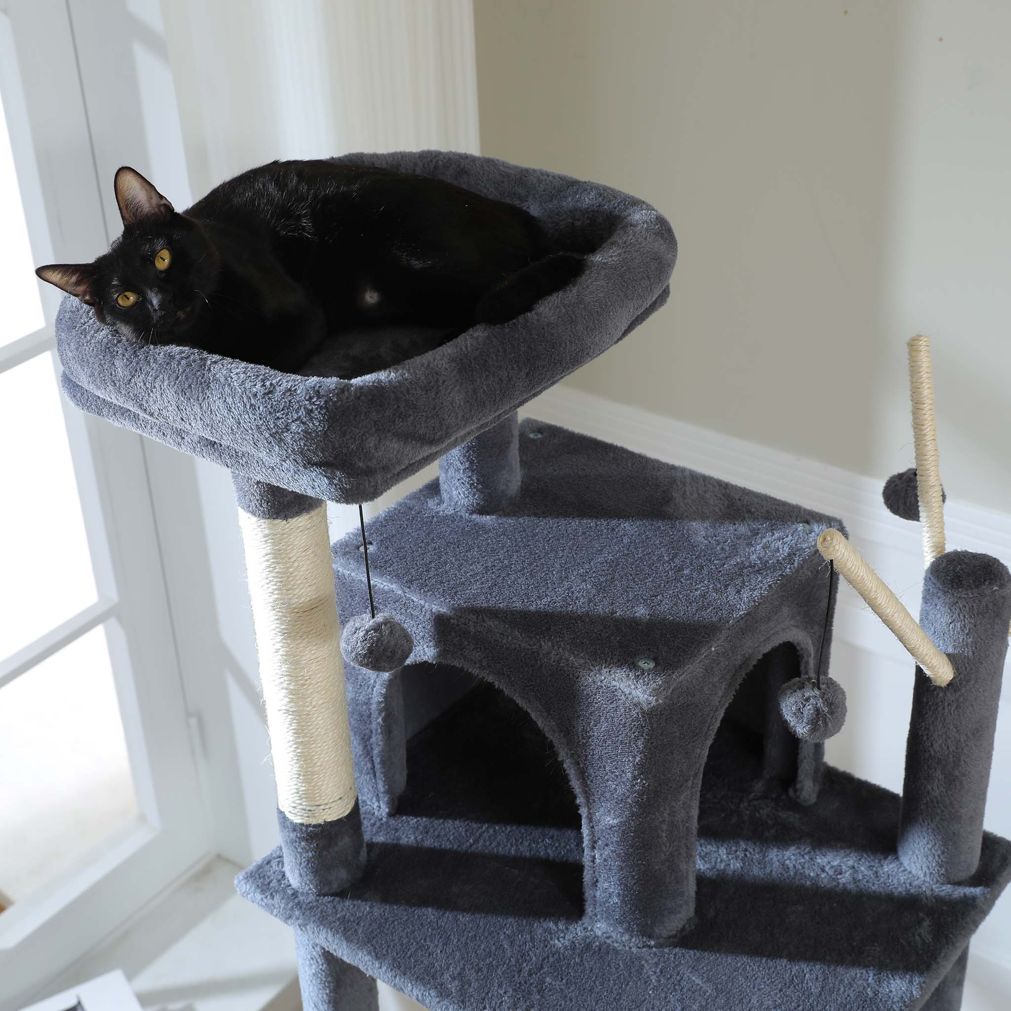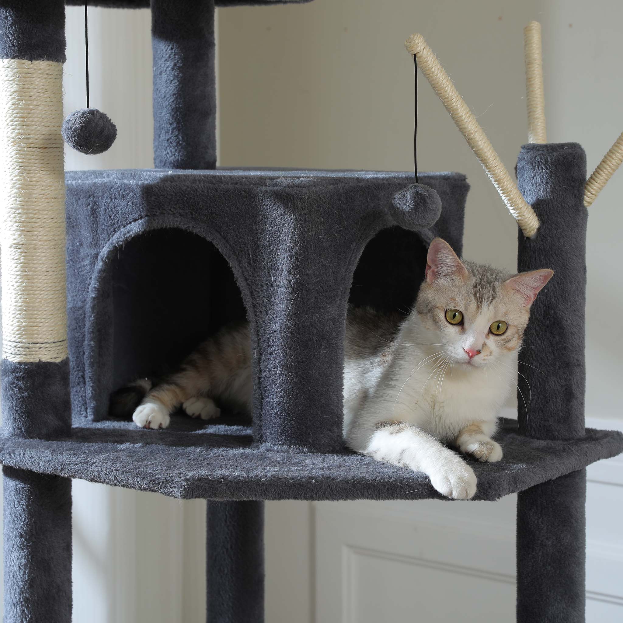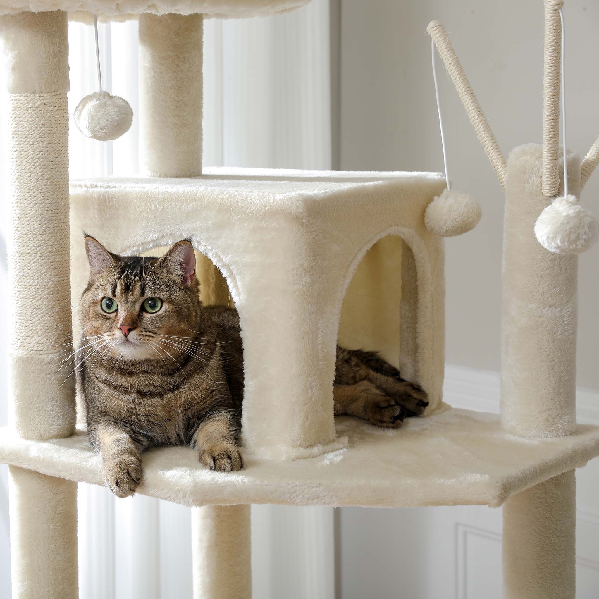 Het kattenhuisje biedt een rustige en veilige plek voor katten die graag wat privacy hebben. Deze warme, afgesloten ruimte is verhoogd, waardoor je kat zich volledig op zijn gemak voelt. Voor extra speelplezier zorgen de bungelende speelballetjes aan koorden voor eindeloos vermaak. Geef jouw katten de perfecte combinatie van comfort en veiligheid met de CatCastle V2. Bestel vandaag nog en maak van je huis een katten paradijs waar jullie allebei van genieten.