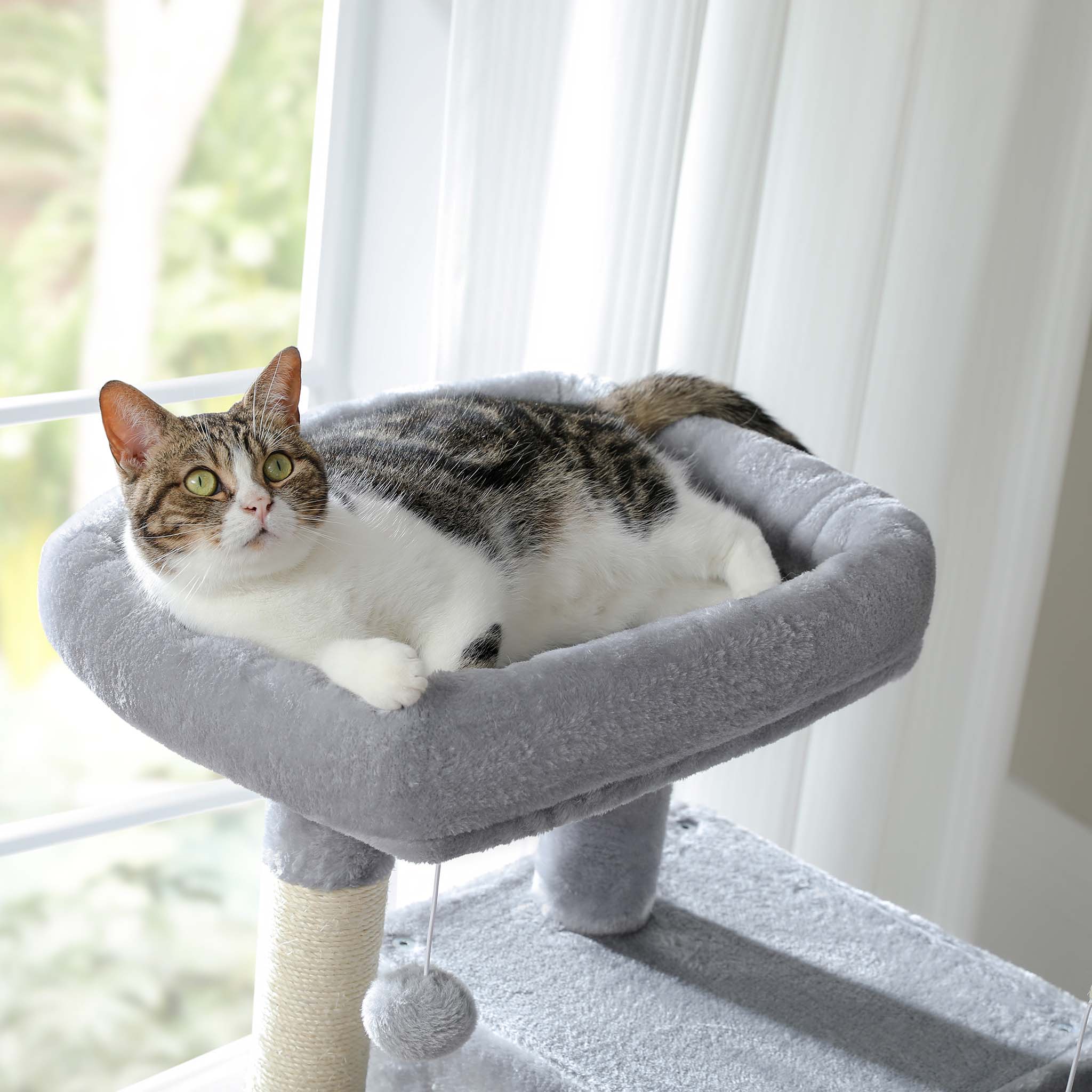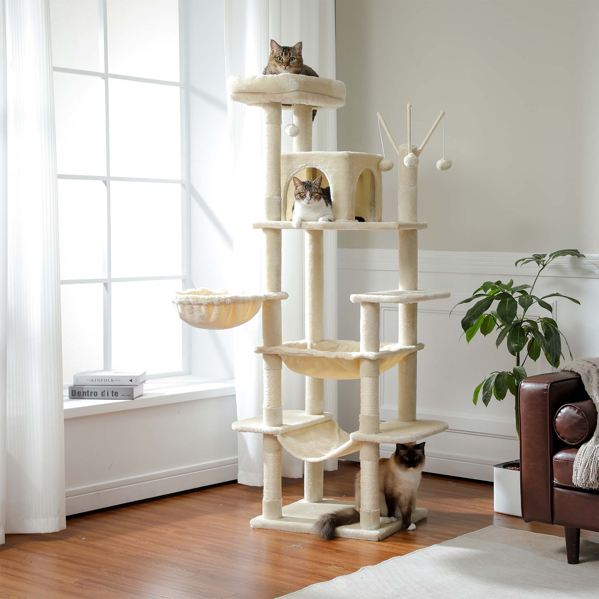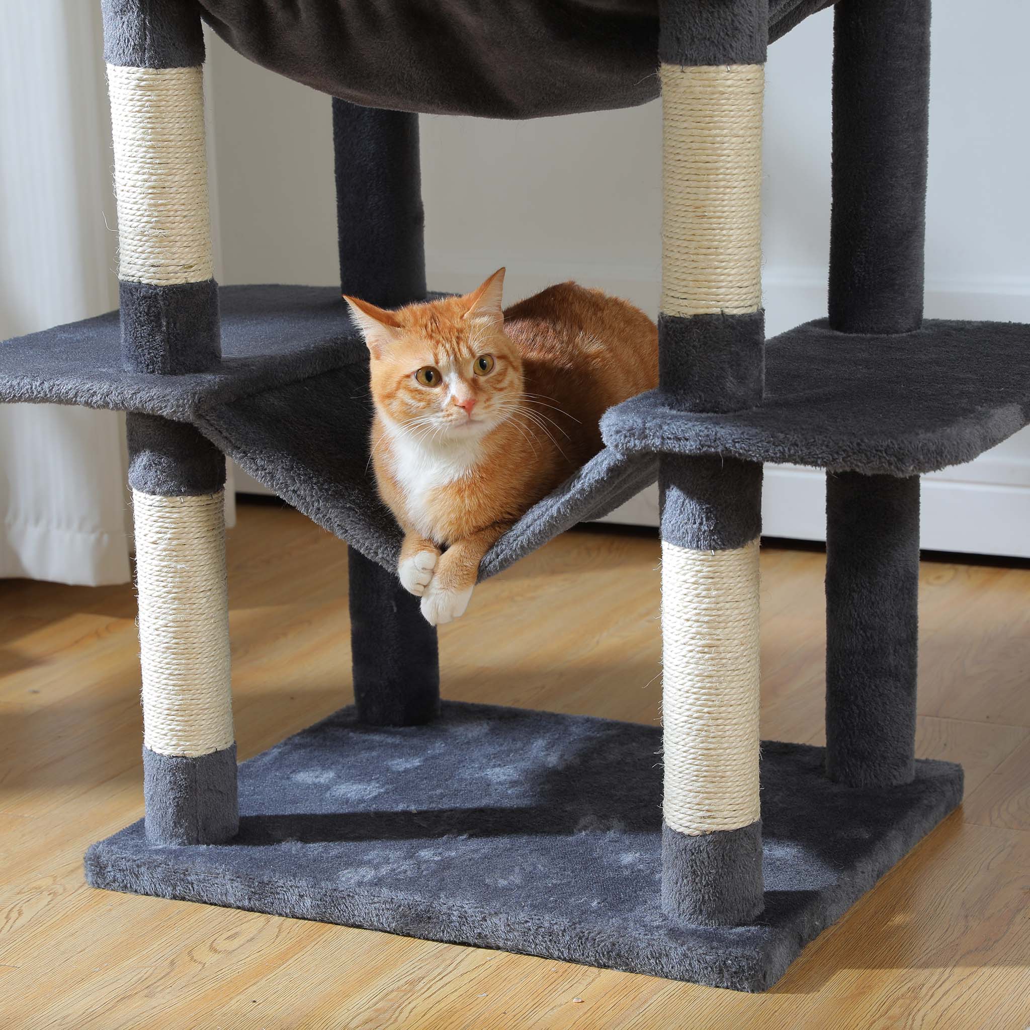 Katten houden van overzicht. De CatCastle V2 heeft verhoogde ligplekken zodat jouw katten comfortabel de omgeving kunnen observeren, ideaal voor katten die graag alles in de gaten houden. De zachte hangmat biedt een knusse plek om volledig te ontspannen. Na een klimpartij of een rustige middag zorgt de hangmat voor precies de juiste balans tussen ondersteuning en zachtheid. Een niveau hoger bevindt zich een comfortabel kattenhuisje, met daarboven nog een extra rustplek voor een heerlijk dutje.