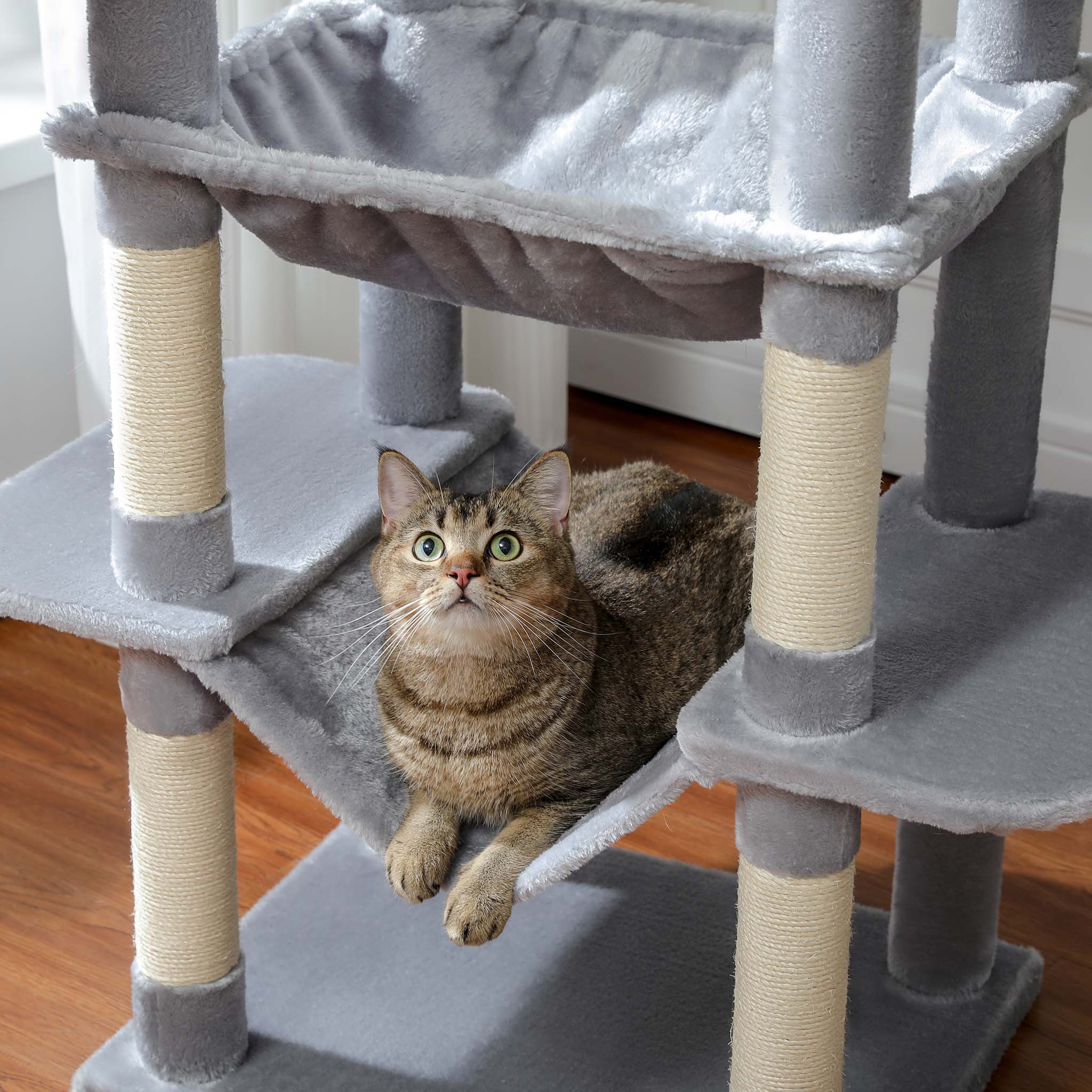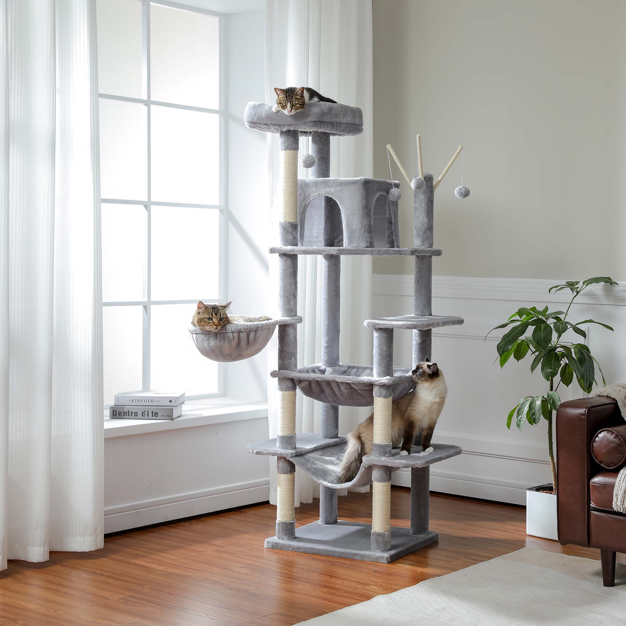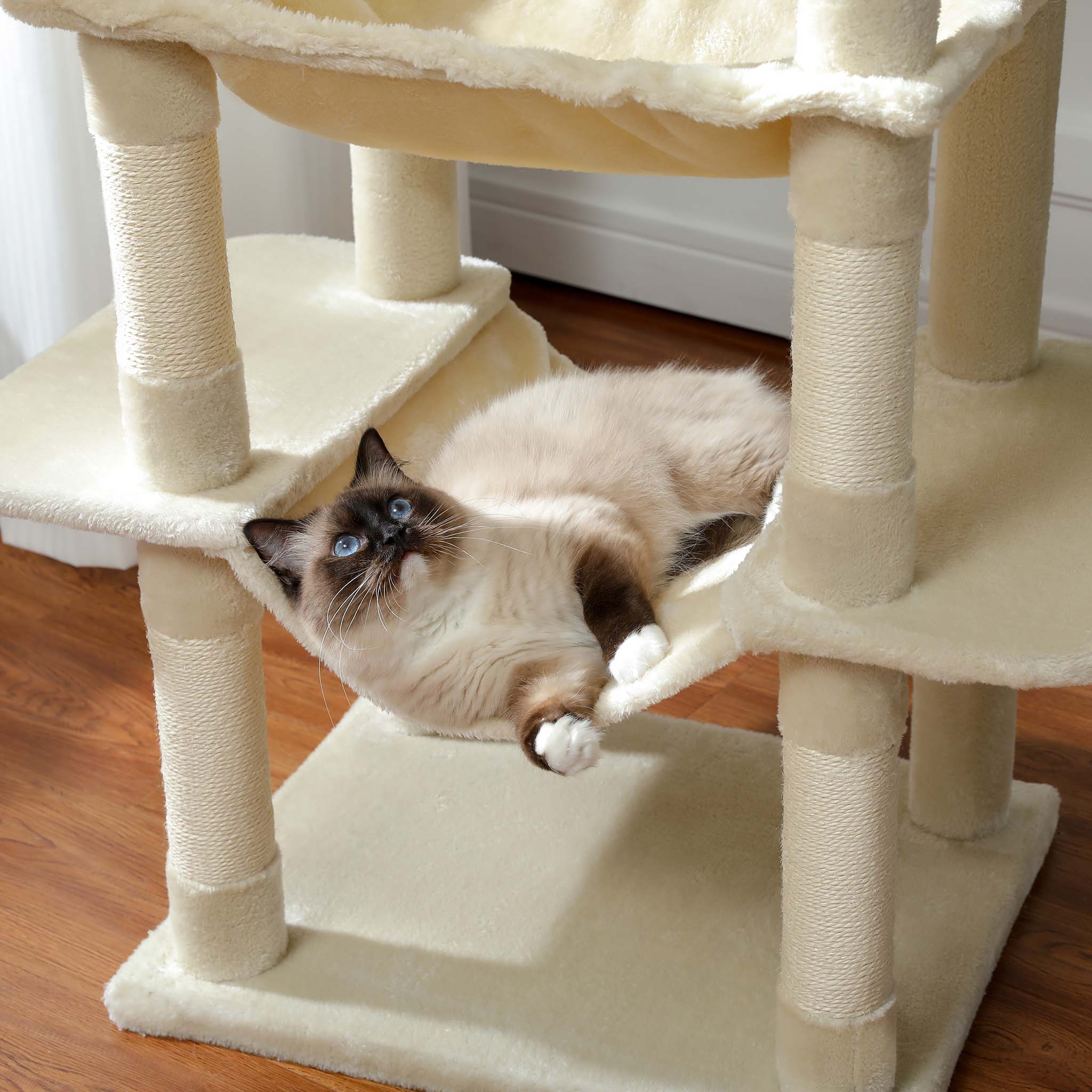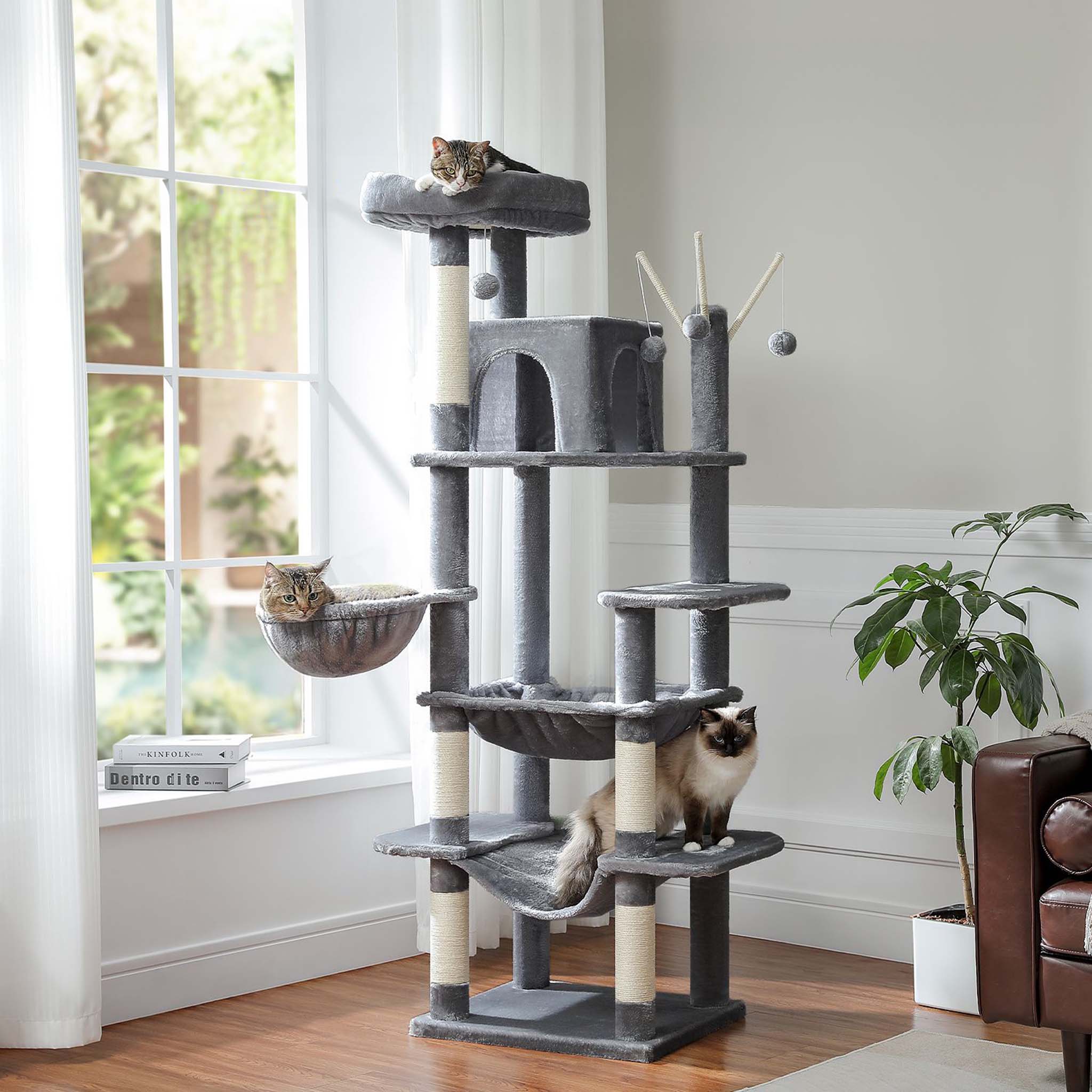 Katten houden van overzicht. De CatCastle V2 heeft verhoogde ligplekken zodat jouw katten comfortabel de omgeving kunnen observeren, ideaal voor katten die graag alles in de gaten houden. De zachte hangmat biedt een knusse plek om volledig te ontspannen. Na een klimpartij of een rustige middag zorgt de hangmat voor precies de juiste balans tussen ondersteuning en zachtheid. Een niveau hoger bevindt zich een comfortabel kattenhuisje, met daarboven nog een extra rustplek voor een heerlijk dutje.