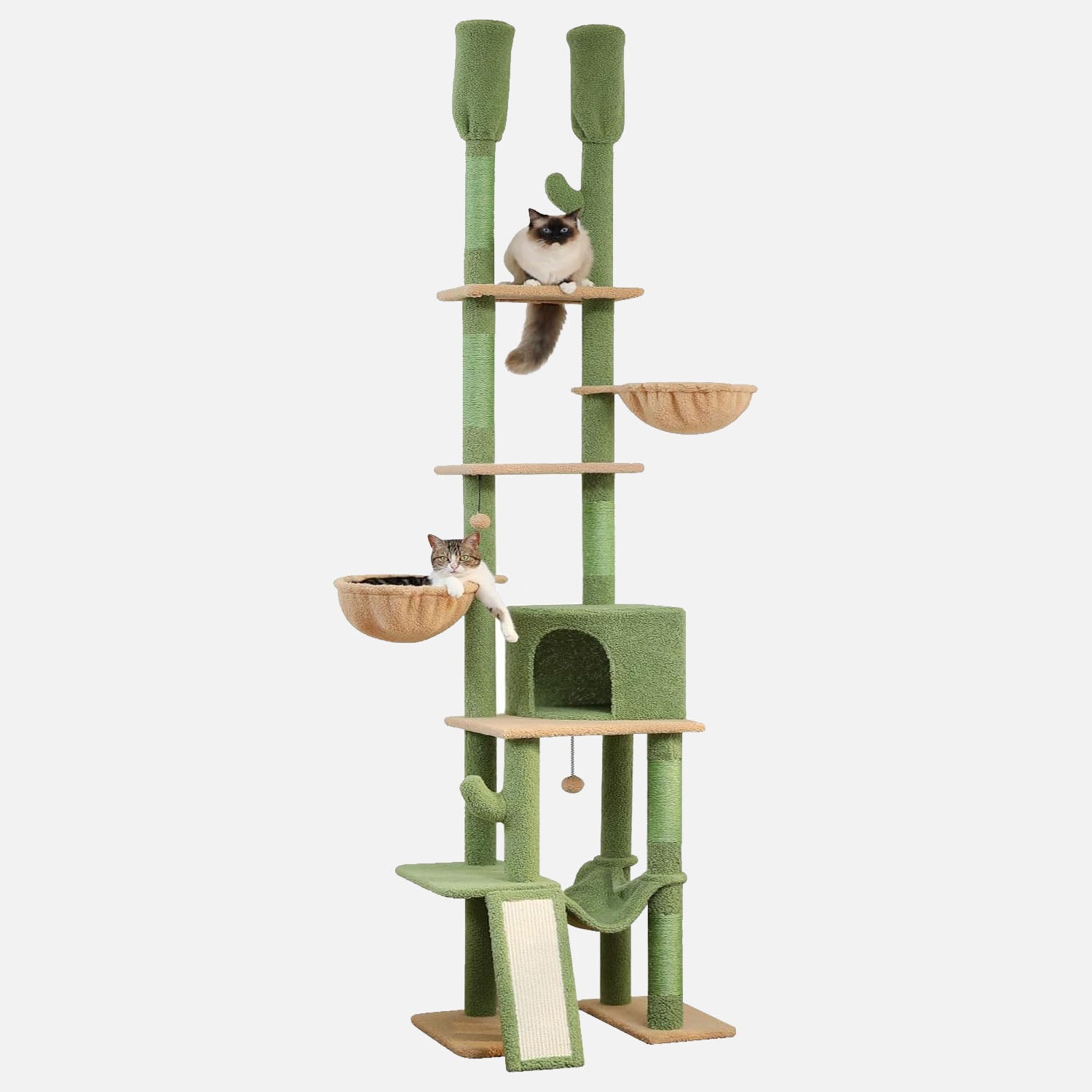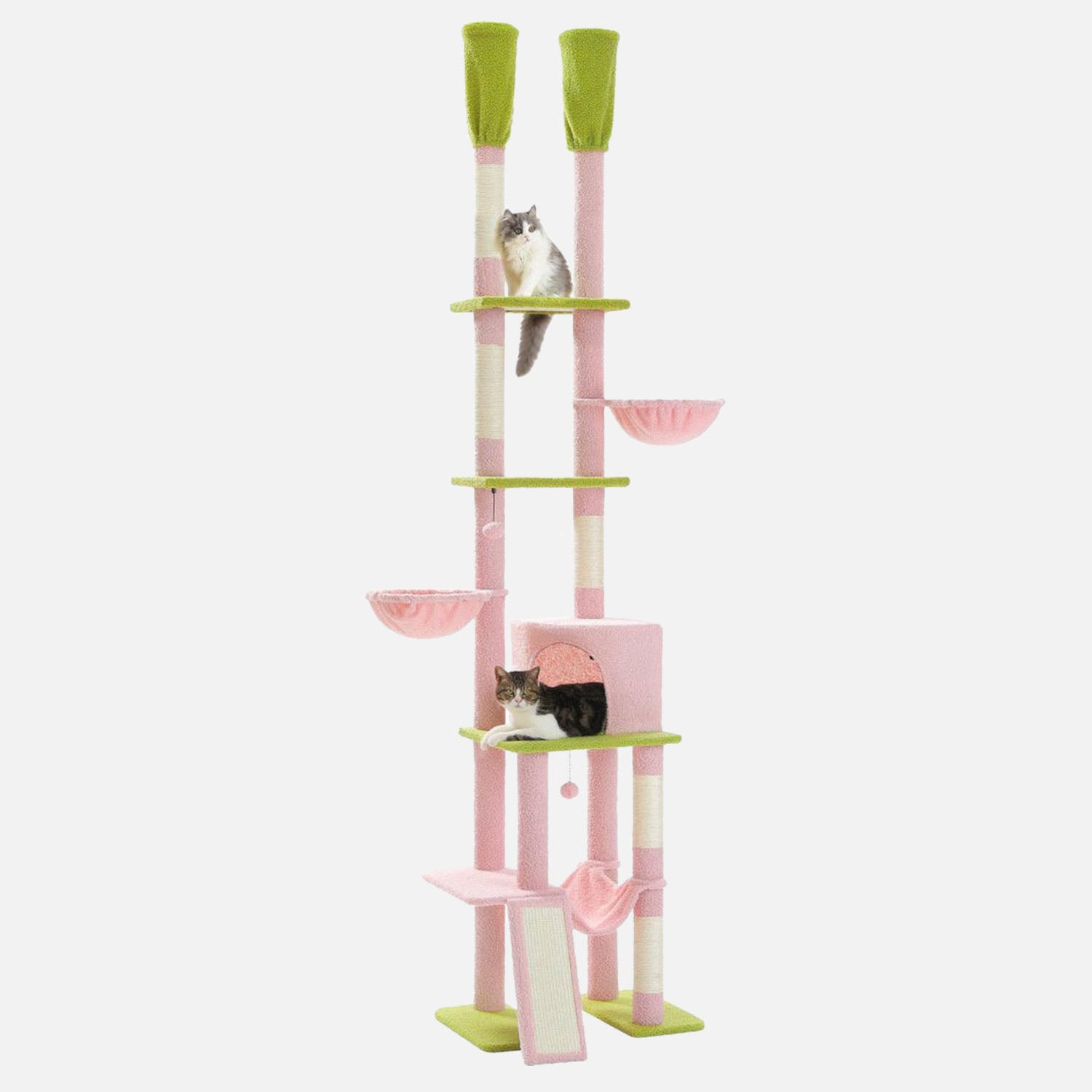 De Catalulu DoubleTower is een hoge plafond krabpaal die elke ruimte verandert in een speelparadijs voor katten. Dankzij het slimme spansysteem is montage eenvoudig zonder te boren en kun je de plafond krabpaal in enkele seconden verplaatsen.