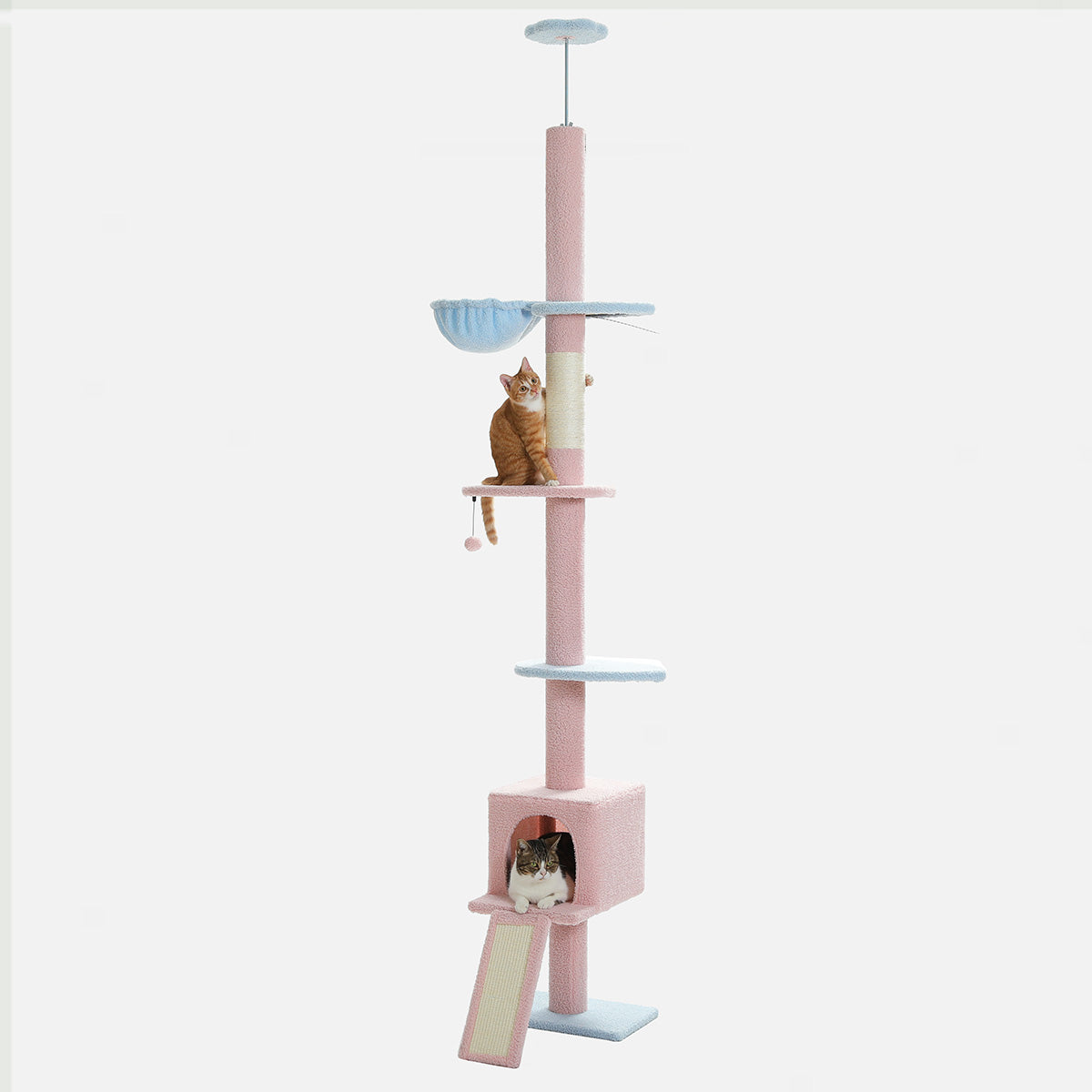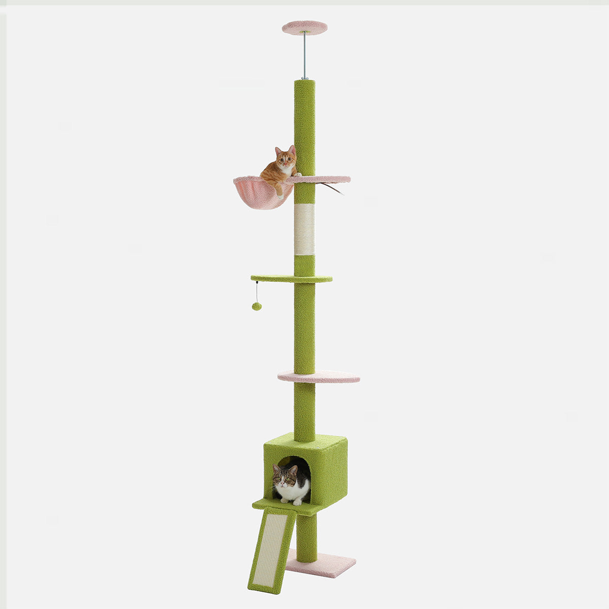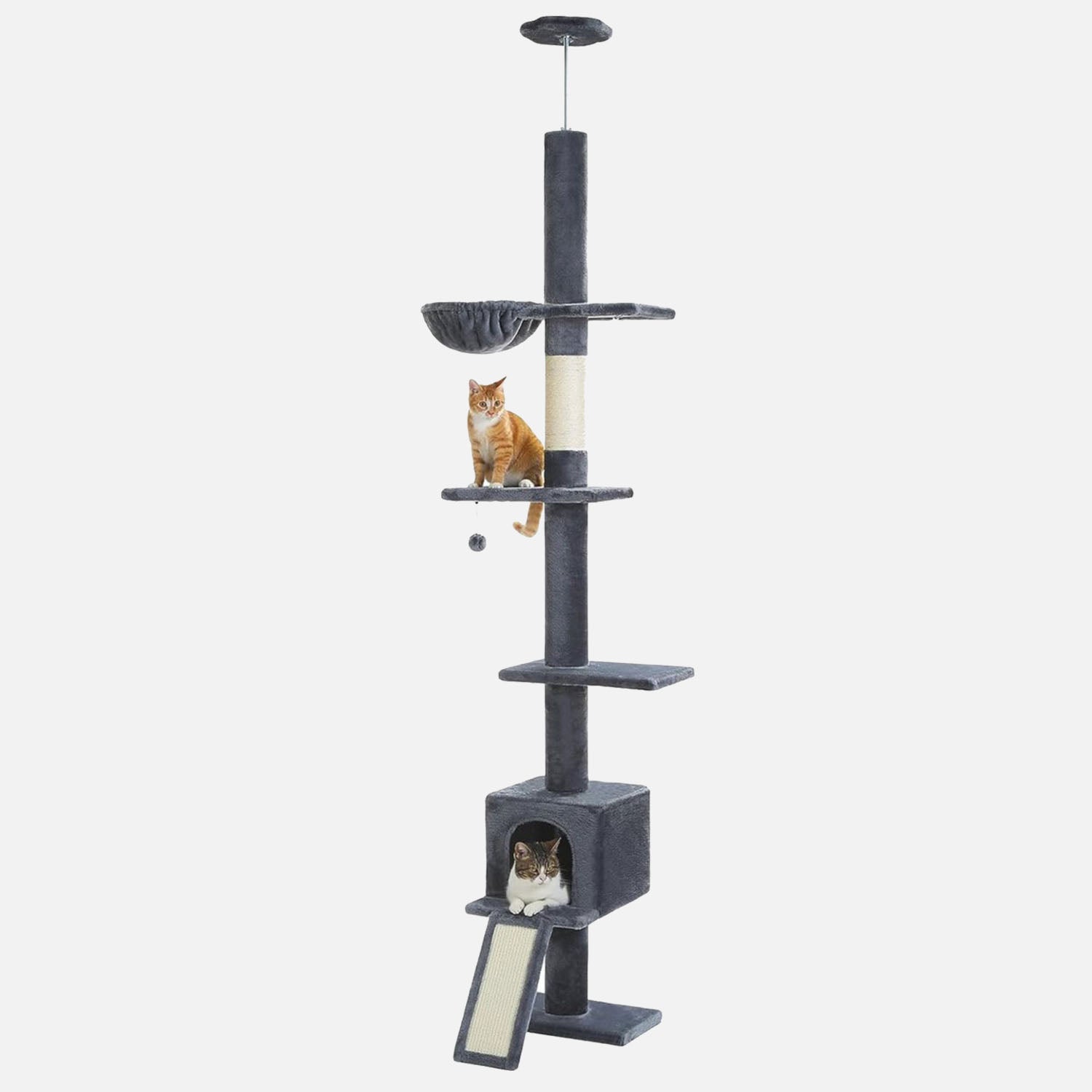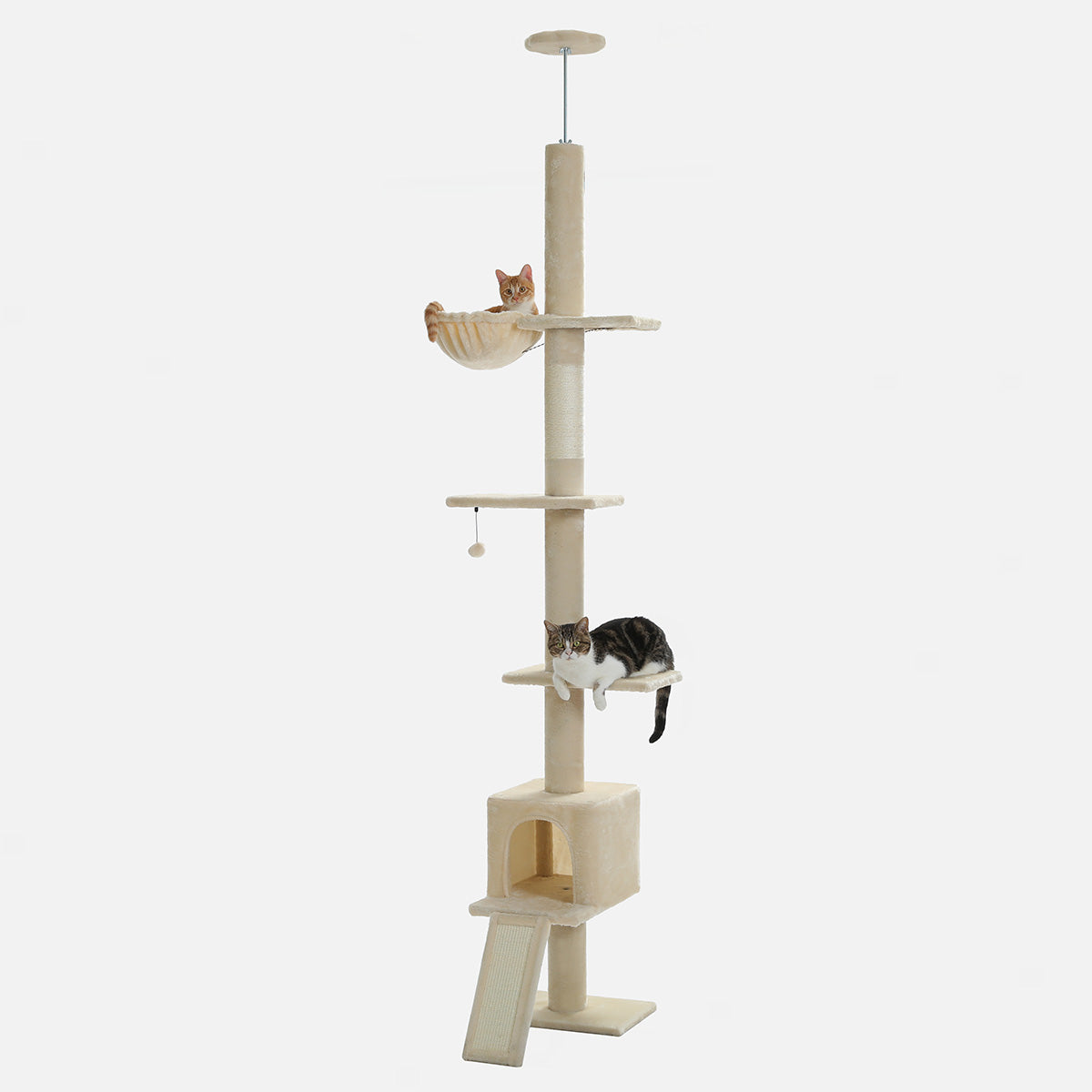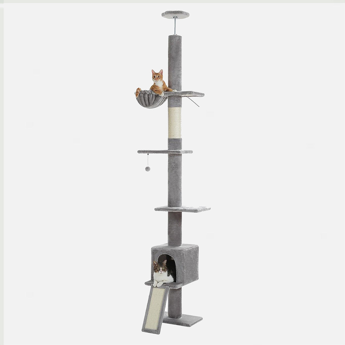 Bespaar ruimte met deze hoge, ruimtebesparende plafond krabpaal. Perfect voor 2 tot 4 katten. Dankzij het slimme verticale ontwerp is hij ideaal voor appartementen, studio’s of elke woning waar de ruimte beperkt is.