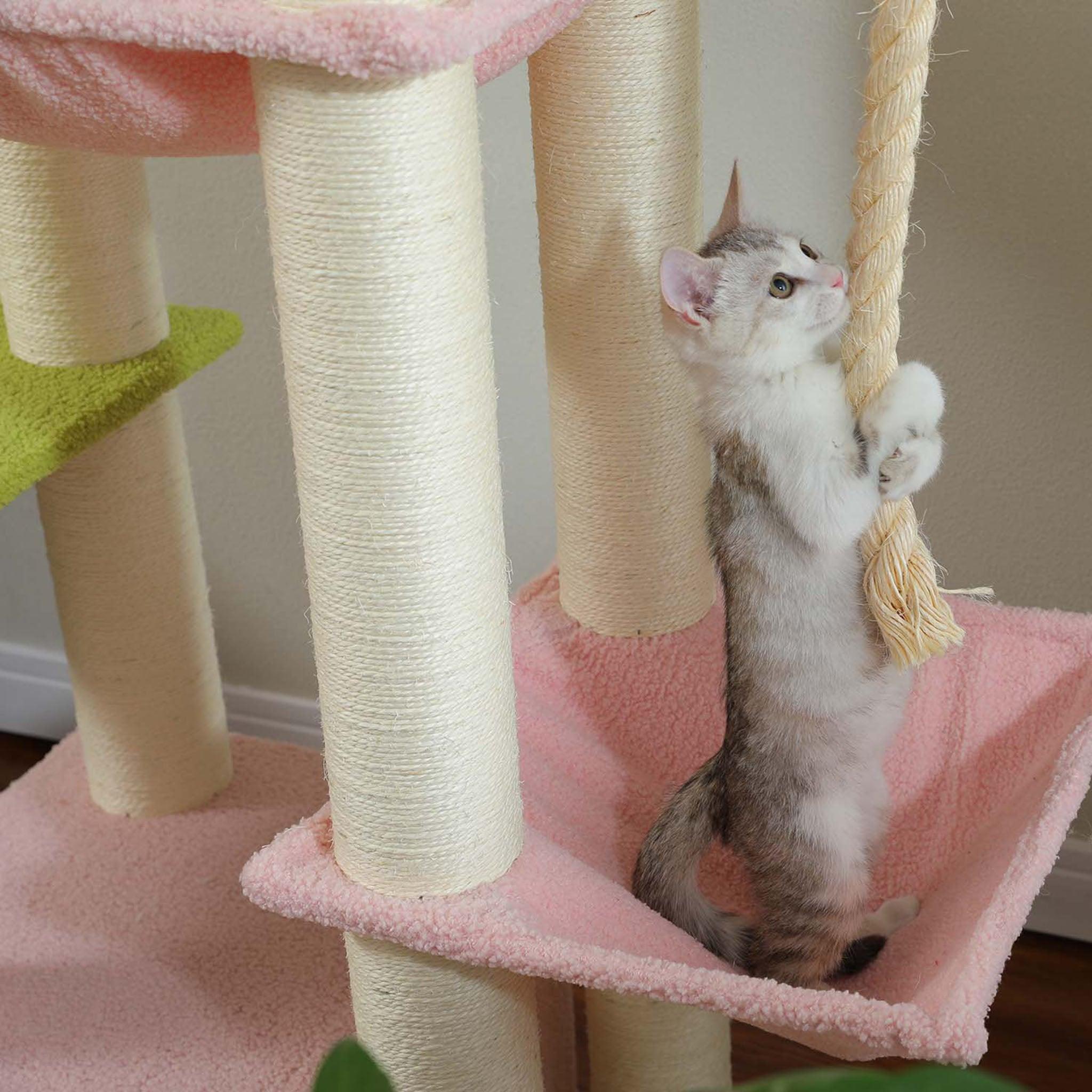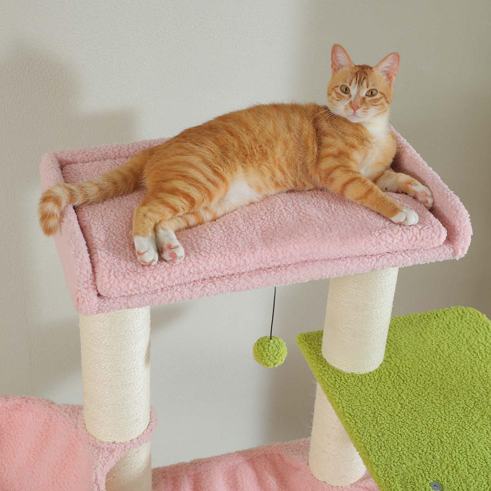 Gemaakt van hoogwaardig hout, duurzaam sisal en zacht pluche combineert de KittyKingdom design met stevigheid. Elk niveau is zorgvuldig afgewerkt voor langdurige kwaliteit, terwijl het afneembare speelballetje zorgt voor eindeloos vermaak. Het bovenbed heeft een afneembare, met de hand wasbare hoes, zodat de krabpaal eenvoudig schoon en fris blijft.