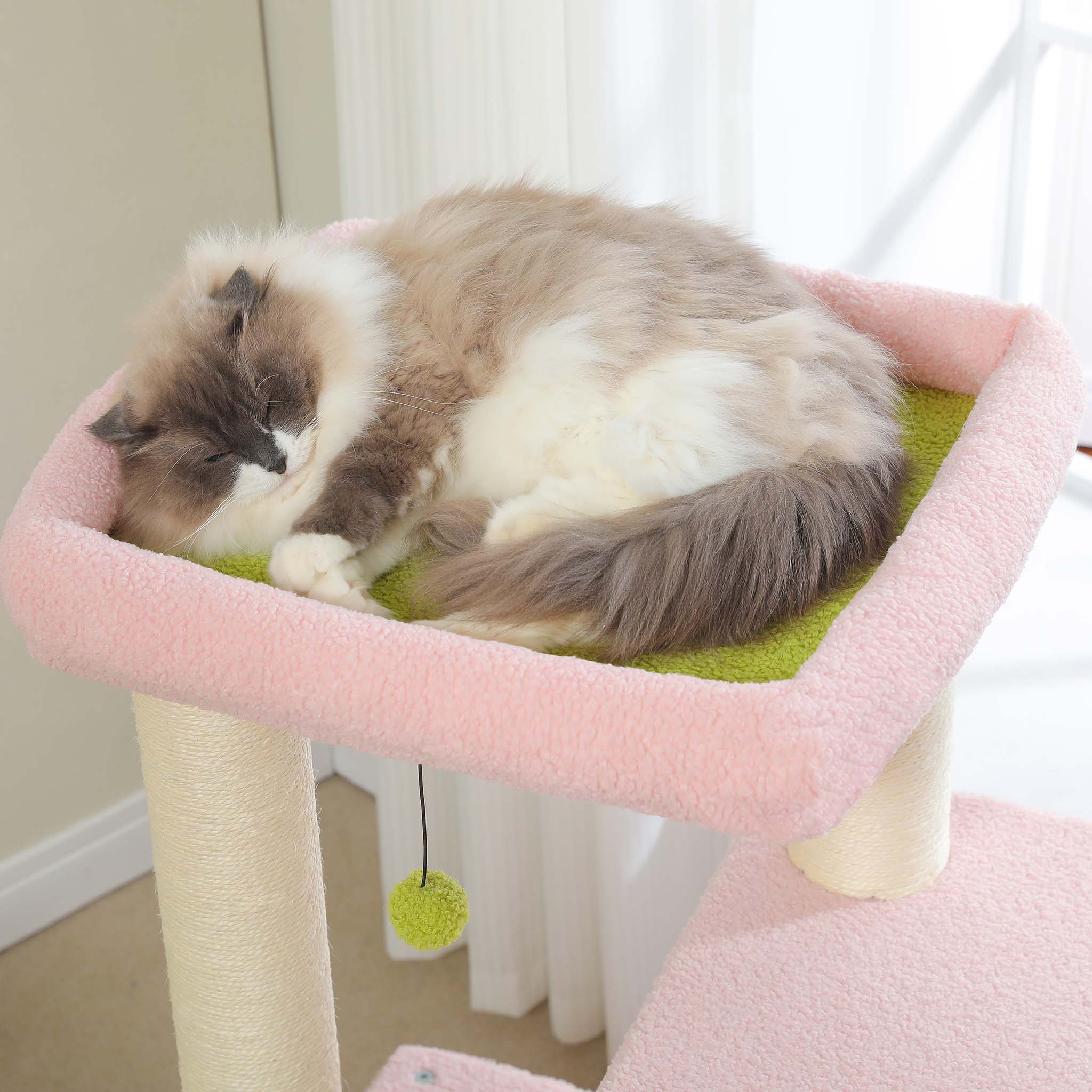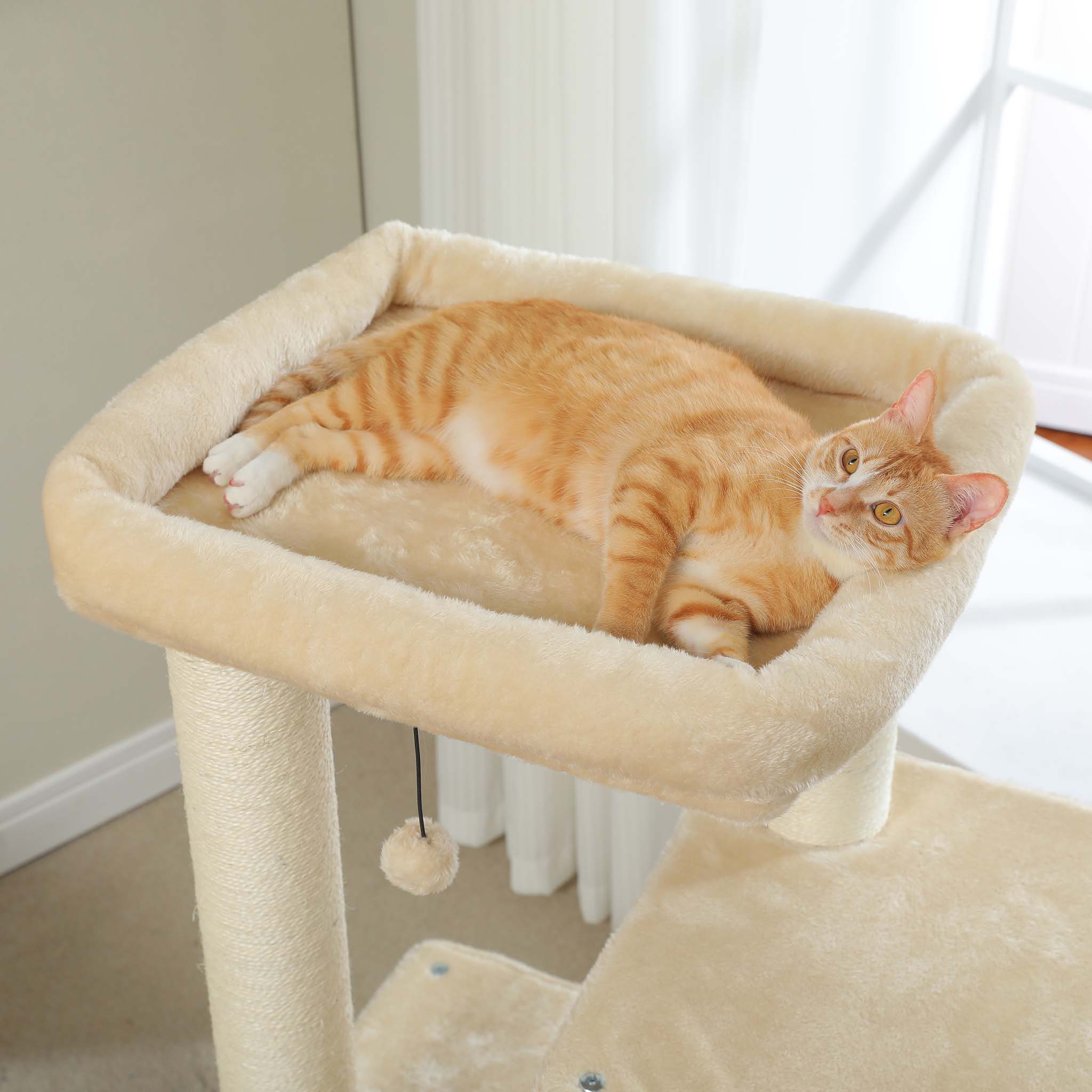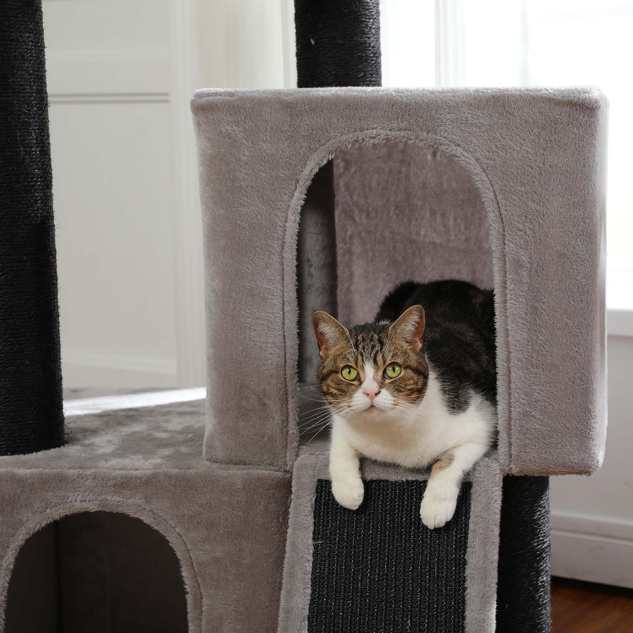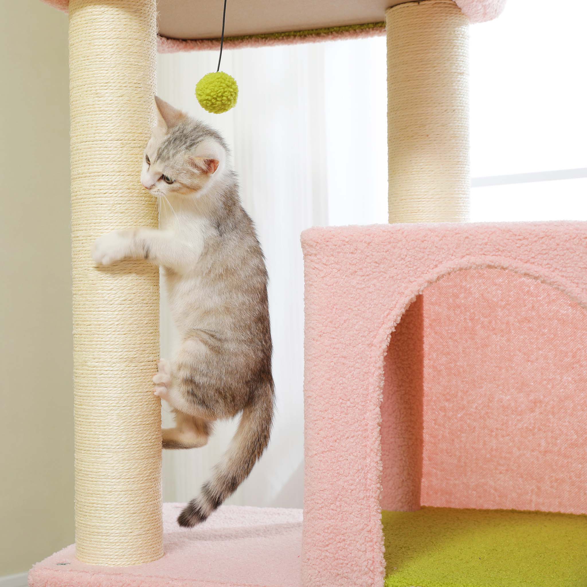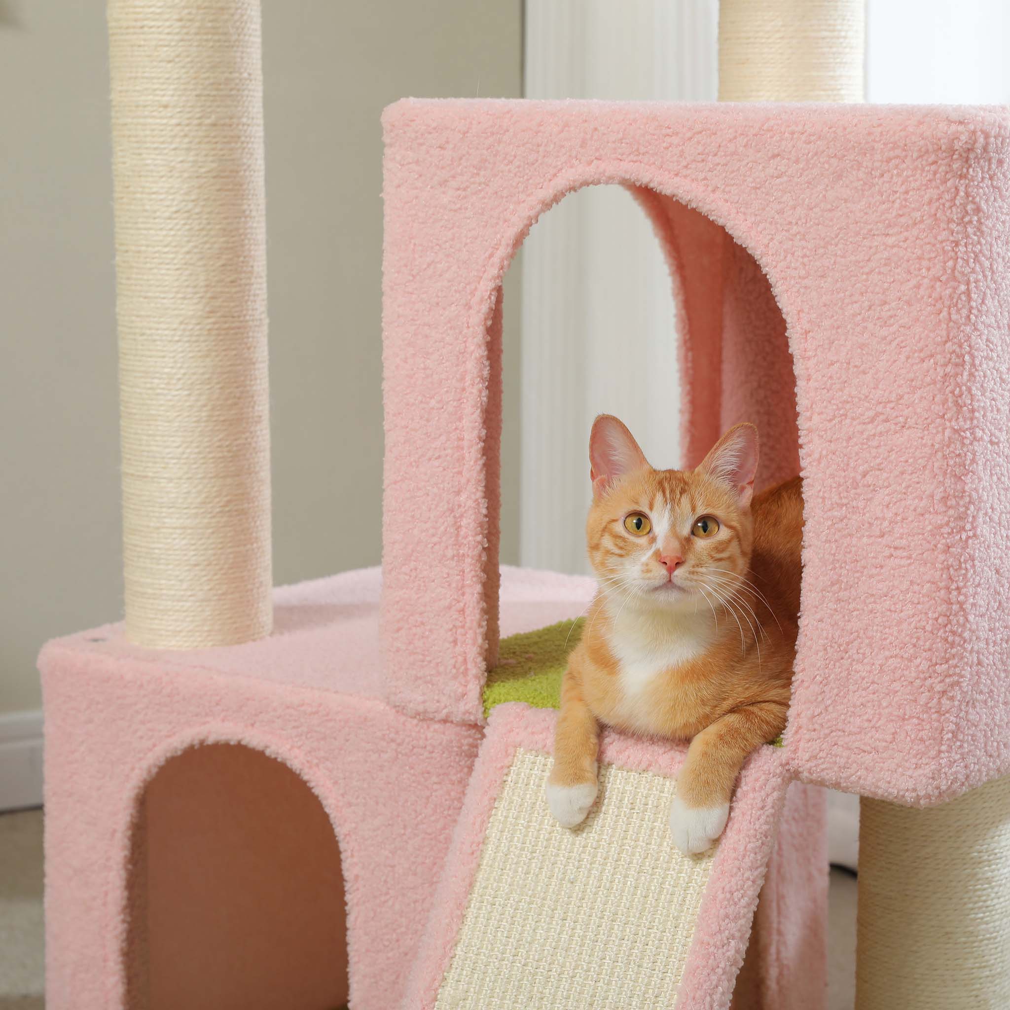 De KittyPalace combineert een tijdloos design met twee ruime kattenhuisjes (40 x 40 x 38 cm) en een groot bovenbed (50 x 50 cm). Perfect voor volwassen katten die houden van comfort en extra ruimte om te ontspannen, klimmen en slapen. De stevige constructie zorgt voor stabiliteit, zelfs wanneer meerdere katten tegelijk klimmen, springen en spelen. Met dikke krabpalen, knusse huisjes, een ladder met geïntegreerde krabramp, vervangbare speelballetjes en een ruim bovenplateau biedt de KittyPalace eindeloze mogelijkheden voor spel en ontspanning. Het bovenbed is bovendien voorzien van een afneembare, met de hand wasbare hoes voor eenvoudig onderhoud.