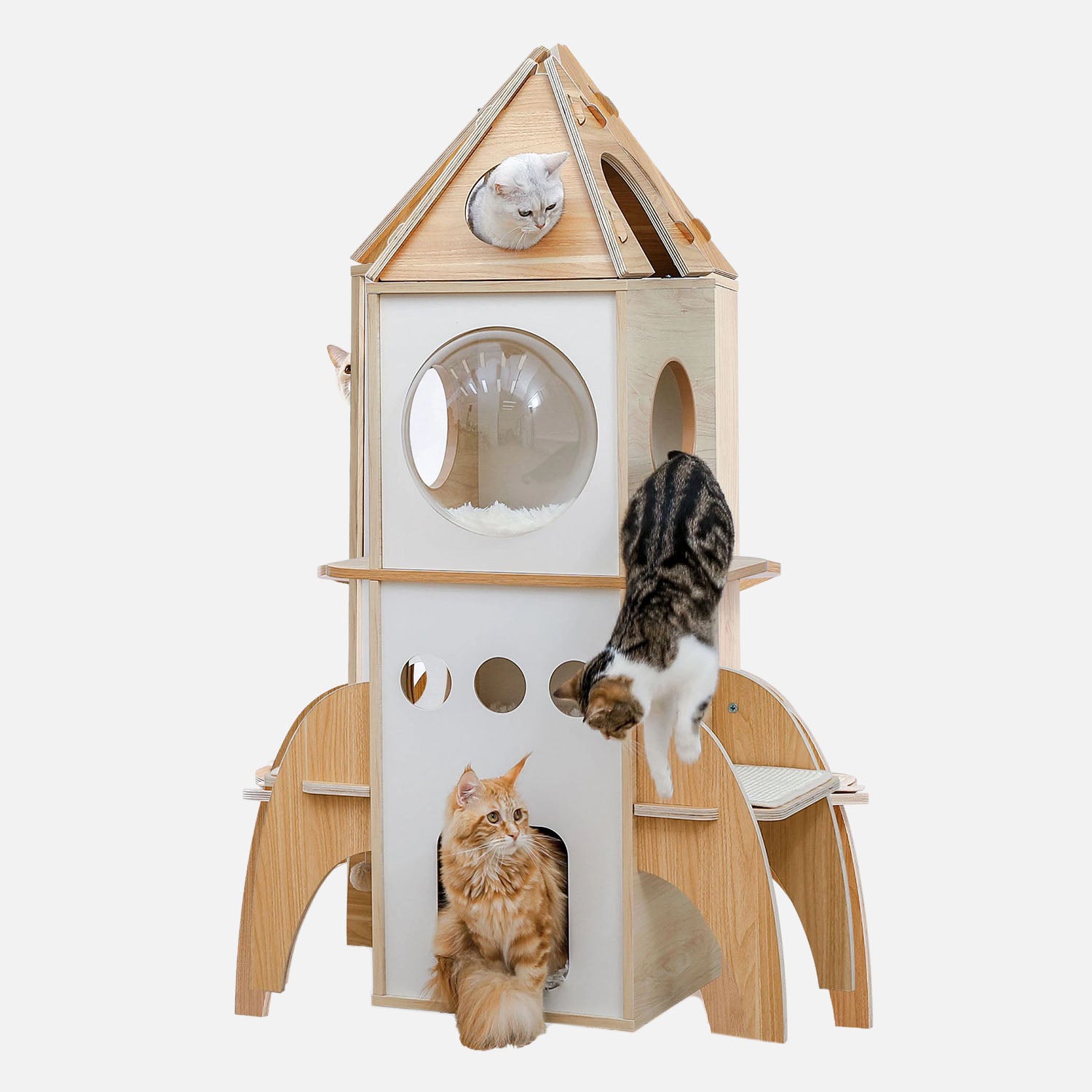 Gemaakt van massief hout biedt de RocketShip krabpaal stabiliteit en duurzaamheid. De stevige constructie zorgt ervoor dat hij moeiteloos bestand is tegen dagelijks gebruik, zelfs wanneer je katten vol energie springen, rennen en krabben.