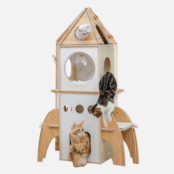 Voeg avontuur en stijl toe aan je interieur met de Catalulu RocketShip houten krabpaal. Geïnspireerd op een grote raket, met meerdere niveaus, knusse ligplekken en een panoramisch uitkijkpunt. De perfecte mix van speelplezier en stijl.
