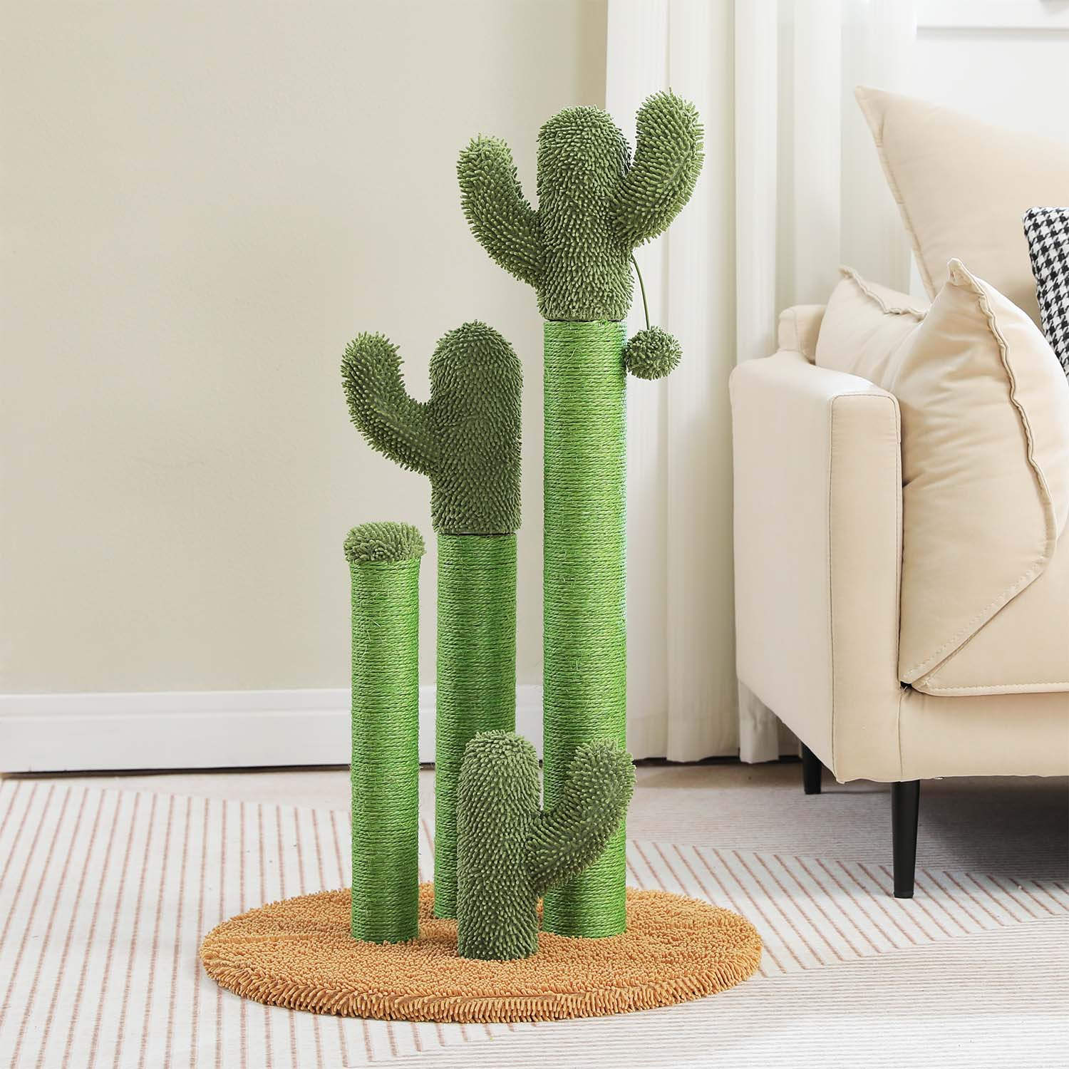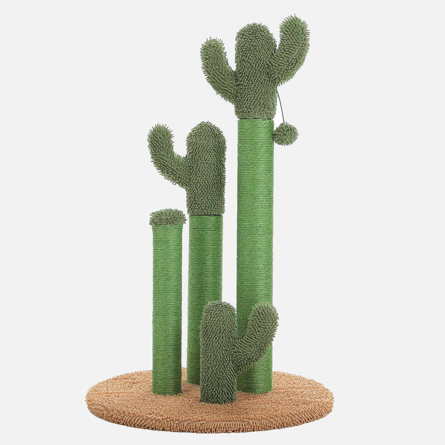 The three vertical posts are wrapped in natural sisal rope, a strong and long lasting material that supports healthy scratching habits. Cats scratch to mark territory, stretch their muscles and maintain their nails. This cactus cat tree gives them a dedicated place to do that while protecting furniture and carpets. The soft plush top and base invite cats to rub, roll and relax after playtime, turning the tree into a warm and cozy resting spot.